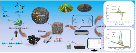 对苯二酚HQ作为化工、农药生产的关键中间体,其残留可导致水体生态毒性与人体健康风险。传统检测技术如气相色谱需高温衍生化,难以适应现场快速分析创新性地将Co3(PO4)2引入生物炭骨架,通过磷酸活化与阳离子表面活性剂(CTAB)扩孔双重改性,电化学活性位点密度提升4.7倍。所构建的CoCPBC/GCE传感器结合一阶导数伏安法,将HQ的检测限降至 0.052 μM,较传统伏安法灵敏度提升 4.4 倍,线性范围覆盖0.1-500 μM,满足地表与土的质量标准检测需求。通过氮气吸附-脱附、X射线衍射(XRD)及高分辨透射电镜(HRTEM)分析证实:Co3(PO4)2以纳米颗粒形式均匀分布于生物炭孔隙中,其(100)晶面暴露的Co²⁺活性位点加速了HQ的氧化还原动力学。在稻田水与土壤实际样品检测中,加标回收率达95.73-99.53%RSD≤3.42%。该技术将导数伏安法与生物炭基材料结合,通过信号放大效应解决了复杂基质中痕量污染物检测的信噪比难题,为环境应急监测提供了便携化技术支撑。