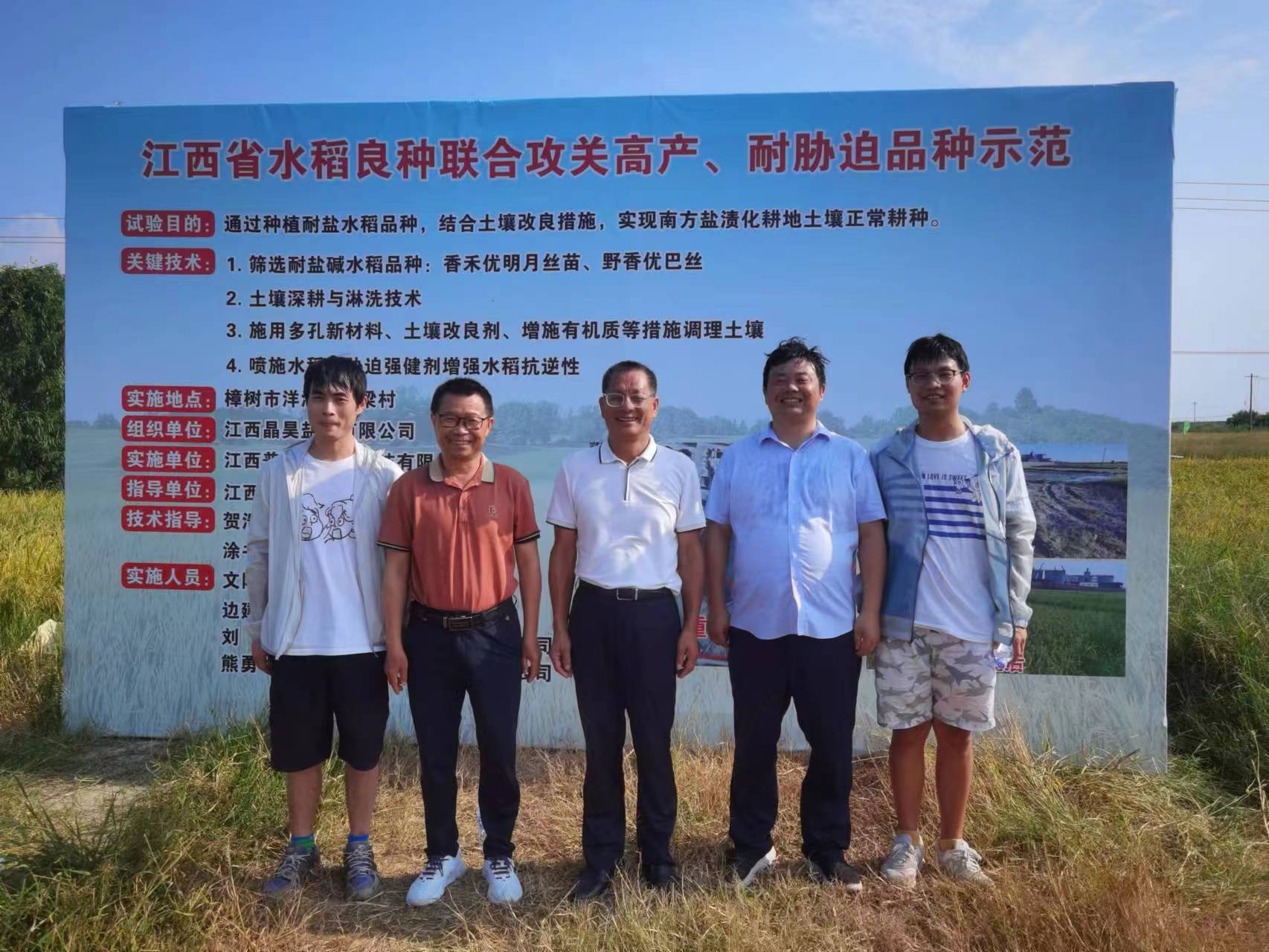 2023年8月20日,江西省作物学会组织有关专对爱游戏ayx官方网站、江西普瑞丰生态科技有限公司和江西晶吴盐化有限公司实施的“江西省水稻良种联合攻关高产、耐胁迫品种示范”产学研项目进行现场考察与测产,我校副校长、江西省作物学会理事长贺浩华教授,爱游戏ayx官网刘庆言书记和青年教授文阳平博士及其研究生参加这次测产现场观摩会。