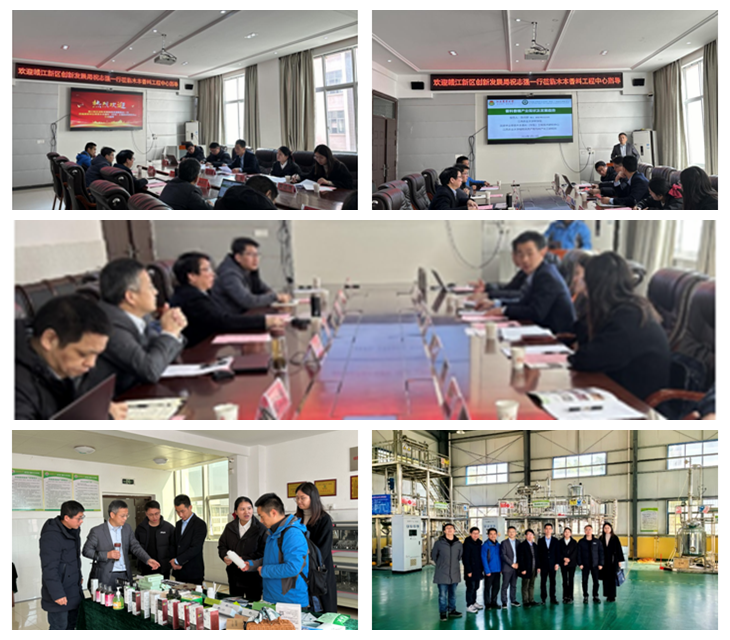 1月12日,赣江新区创新发展局祝志强副局长一行来爱游戏ayx官网交流调研,院长、国家林草局木本香料(华东)工程技术研究中心主任王宗德,副院长卢丽敏,工程中心副主任陈尚钘、副主任廖圣良等参加调研。