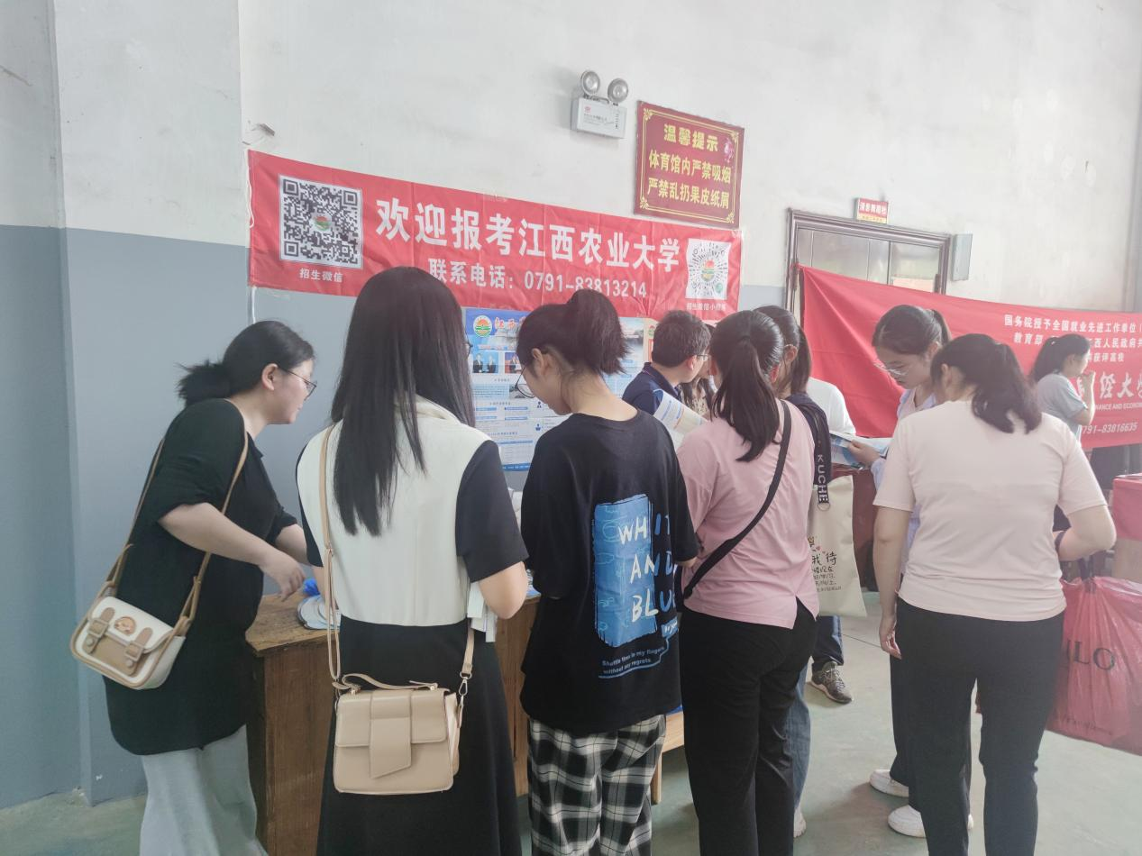 凤凰木盛开,花香蝶自来,校园内人头攒动、热闹非凡。早上7点半,爱游戏ayx官网招生宣讲队早早亮出旗帜、拉起横幅、摆好摊位,开启招生宣传活动,为考生提供报考咨询。江西省唯一的书记、校长双院士高校,开设六个惟义实验班,学校2023年升学率达到34.21%……全体队员耐心地为学生及家长介绍我校的情况,积极地给学生及家长发放招生宣传手册、赠送江农专属纪念品、进行面对面交流,不仅为他们解答了填报志愿中的各种疑问,同时就学校的特色专业、优势学科、录取政策等细节方面进行了详细阐述。
