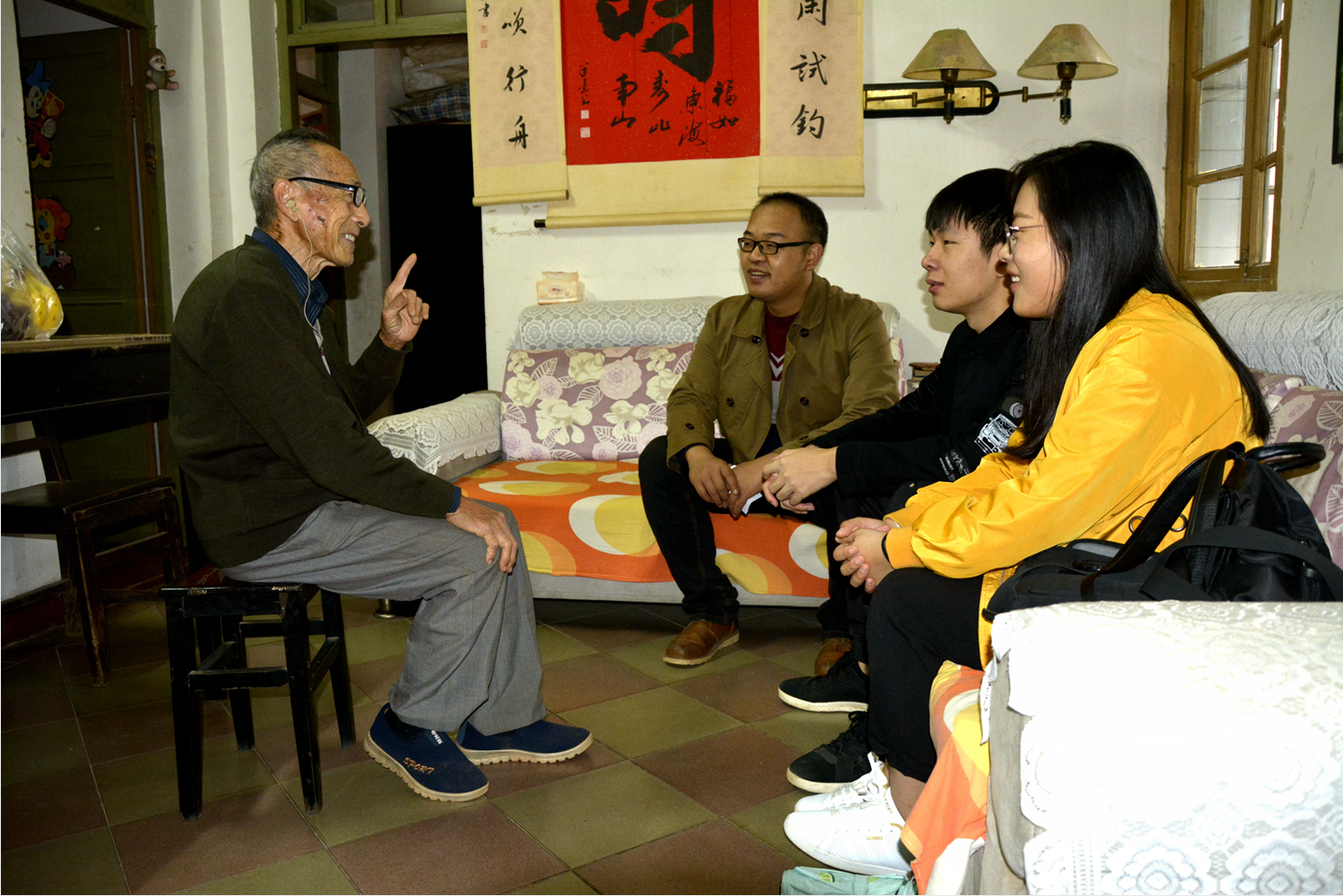 活动中,师生党员代表及党的近期发展对象来到理学院退休教职工王唐生、姚新、马念芳及庞惠君老师的家中,同老人忆旧岁、拉家常、谈变化,同时帮助老人打扫家中卫生。