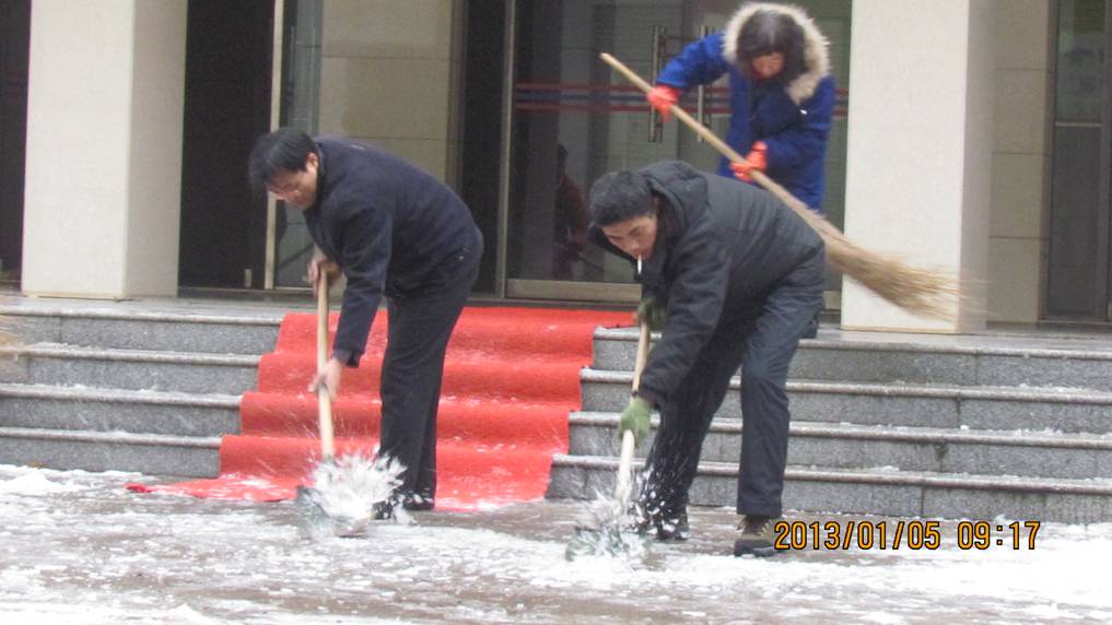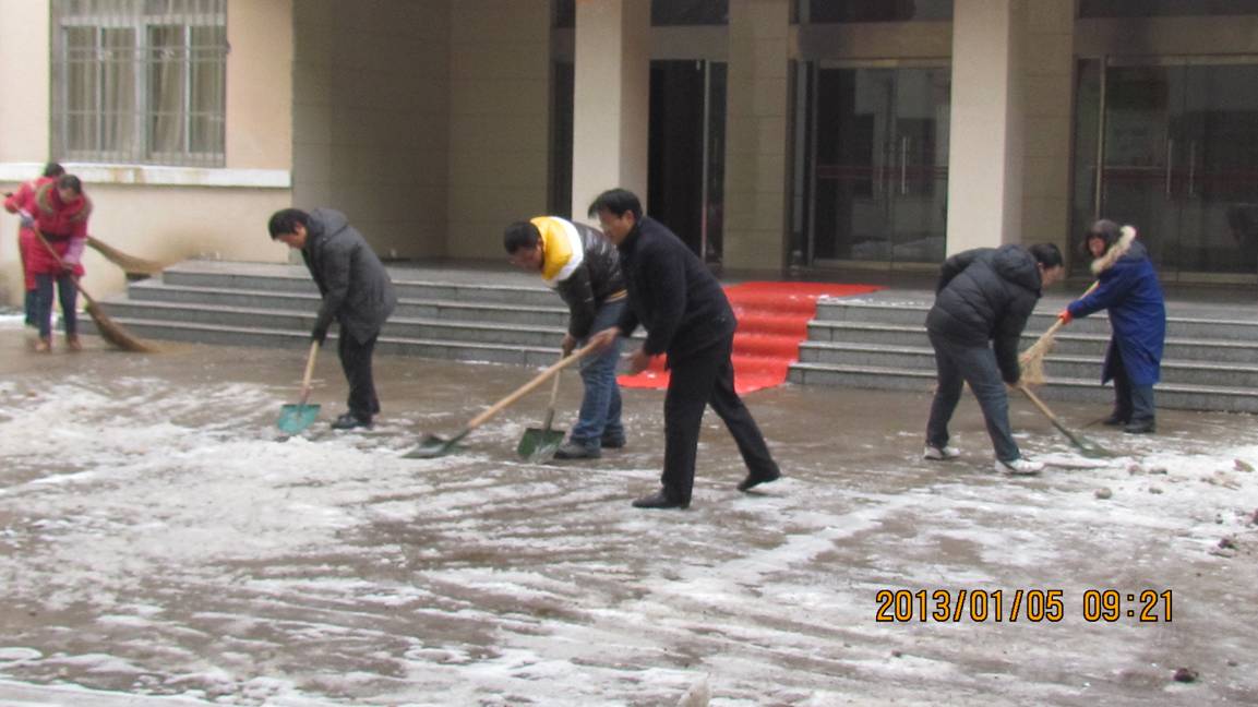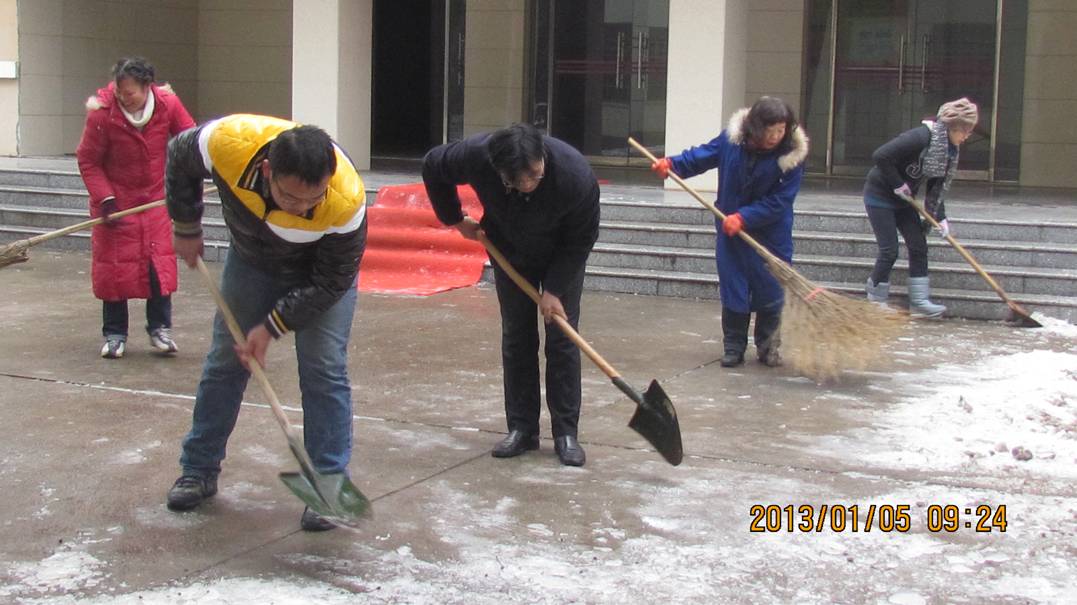 学院领导和行政党支部党员践行十八大精神义务扫雪劳动