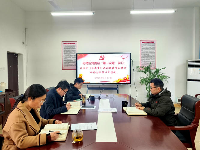 2025年3月17日8:40,学院召开党委会,继续学习习近平总书记关于教育工作的重要论述。党委领导班子成员参会,九三学社社员、副院长龚霞及学生党总支书记彭玉萌列席会议,会议由学院党委书记刘庆言主持。