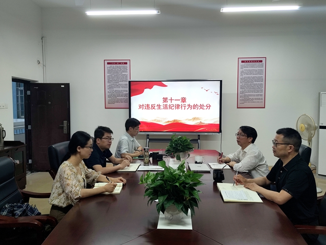 学习会上,彭玉萌带领与会人员认真学习了《中国共产党纪律处分条例》(下文简称《条例》)第十一章“对违反生活纪律行为的处分”及第三编附则内容,班子成员结合个人工作实际开展交流研讨。