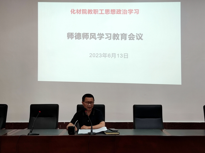 202361315:00,学院在致学楼阶梯报告厅召开学院教职工大会,开展了6月份教职工思想政治学习,专题进行师德师风教育学习。院党委书记刘庆言传达了省教育厅关于师德师风建设的会议精神,学习警示了教育部公开曝光第十二批7起违反教师职业行为十项准则典型案例。