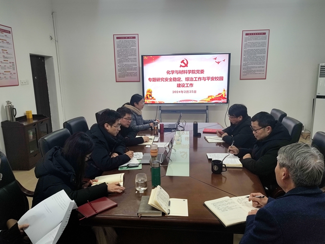 2024年2月25日14:50,学院党委召开扩大会议,专题研究安全稳定工作、综治工作和平安校园建设工作。学院党委领导班子成员、副院长龚霞、科级干部、实验室主任参会,会议由学院党委书记刘庆言主持。