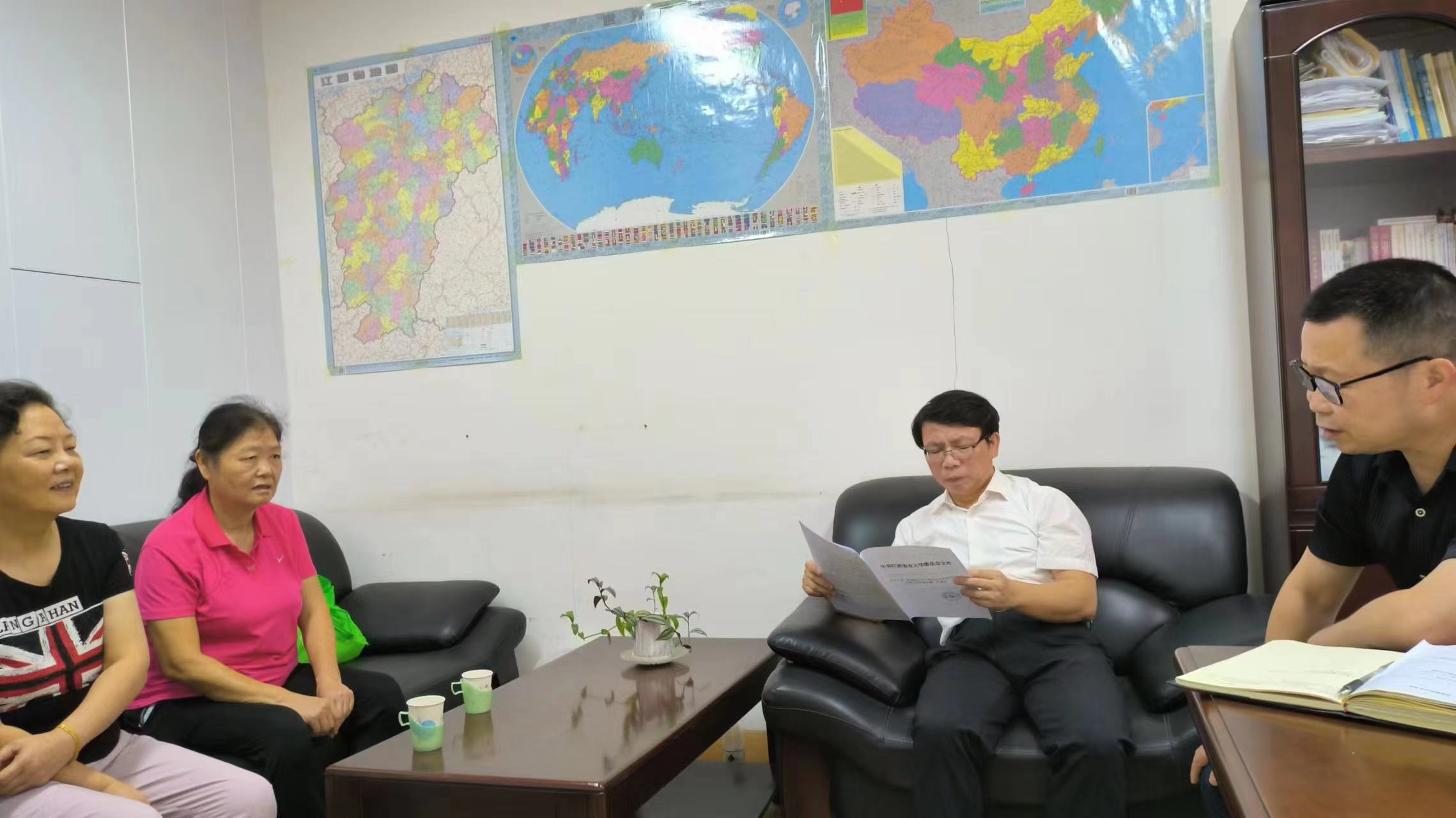 为落实学校《南昌经开区爱游戏ayx官方网站老旧小区改造工作实施方案》工作,学院高度重视,积极了解爱游戏ayx官网涉及老旧小区改造的教职工第一手资料。为掌握情况,便于施策,学院党委书记刘庆言、院长王宗德邀请已故教师肖丛伟的女儿肖芳华、肖芳英进行了座谈,传达了学校相关文件精神,对学校老旧小区改造的内容和预期效果进行了详细解读,希望涉及改造的住户予以支持。肖芳华、肖芳英代表母亲表示积极支持学校老旧小区改造工作,对改造工作提出了自己的建议。院领导对家属支持学校老旧小区改造表示赞赏,对其提出的建议会及时向相关部门反映。据悉,目前有两户住户肖丛伟家属、吴文荣家属涉及老旧改造小区,学院正在积极工作。