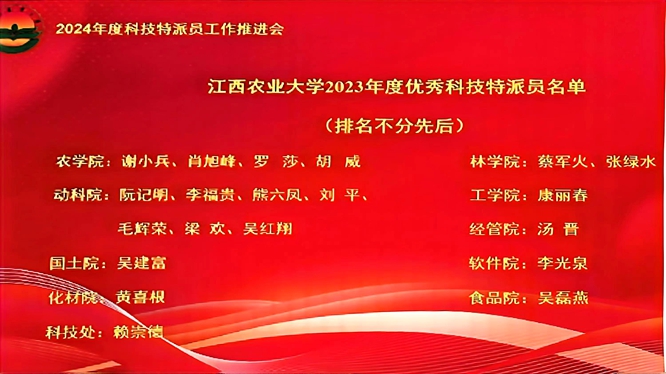 据了解,本次共有20名同志荣获学校2023年度“优秀科技特派员”称号,研究生党支部书记黄喜根教授名列其中,这也是黄喜根教授连续第七年荣获此殊荣。