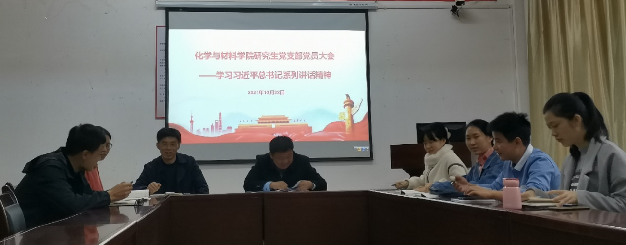 20211022日,研究生党支部于212党员活动室召开了党员大会——“学习习近平总书记系列重要讲话精神”。会议由支部书记文阳平主持,支部全体党员及近期发展对象参加。