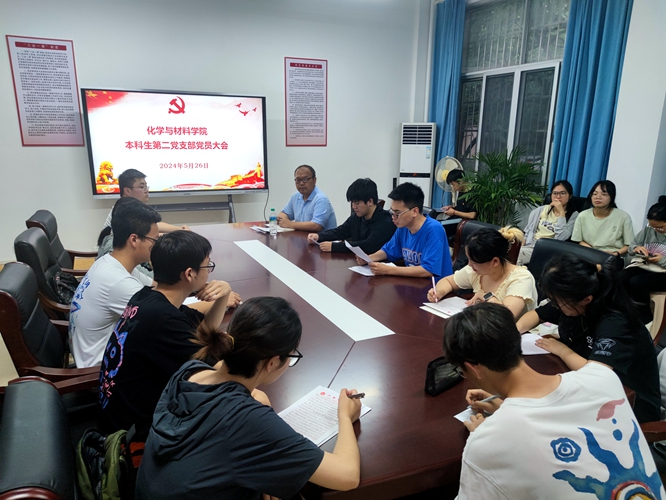 2024年5月26日18:30,本科生第二党支部召开党员大会,开展党纪学习教育及党员发展工作。会议由支部书记廖超主持。