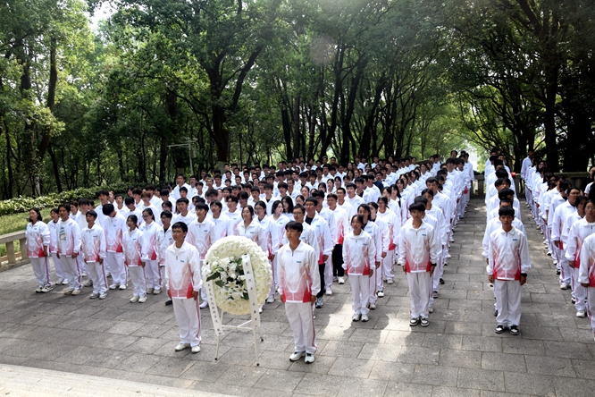 夏末初秋的烈士陵园,葱茏抱翠、庄严肃穆。大家缓步踏上台阶来到烈士墓前,怀着沉重的心情向方志敏烈士墓敬献花圈,举行默哀仪式。在烈士广场,彭玉萌与应化2301班崔明辉先后带领党员、团员重温入党誓词和入团誓词。新生代表集体诵读方志敏烈士《可爱的中国》,崔明辉代表学院全体青年学生发表演讲,大声宣告当代青年对方志敏等老一批革命先烈的深切缅怀与无限崇敬。