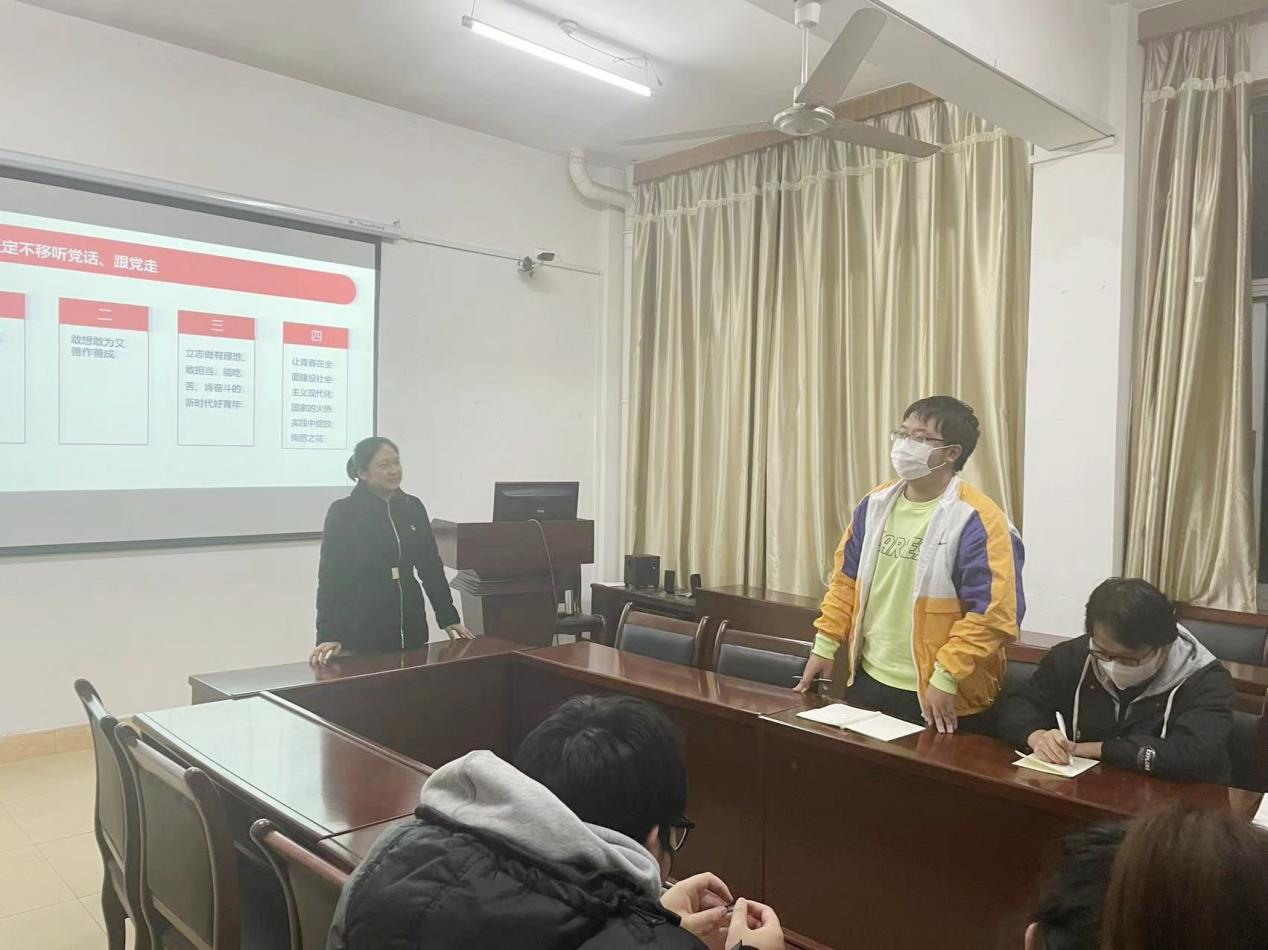 为引领青年大学生深入学习党的二十大精神,推动学生工作更高质量发展,2022年12月7日18:30,学院党委副书记叶健为主要学生干部宣讲党的二十大精神,学院学生组织主要负责人、各班级团支书、班长聆听报告。