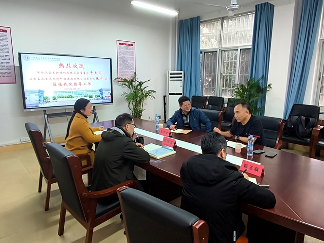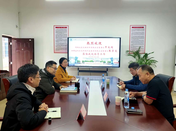 2025年3月13日上午,两位校友企业负责人—河南沃森美新材料有限公司董事长牛太同、江西富诚生态环境科技集团有限公司董事长张学文到访学院,就项目捐赠、校企合作等事项与学院领导进行交流座谈,学院党委书记刘庆言、副院长龚霞及学生党总支书记彭玉萌出席座谈会。