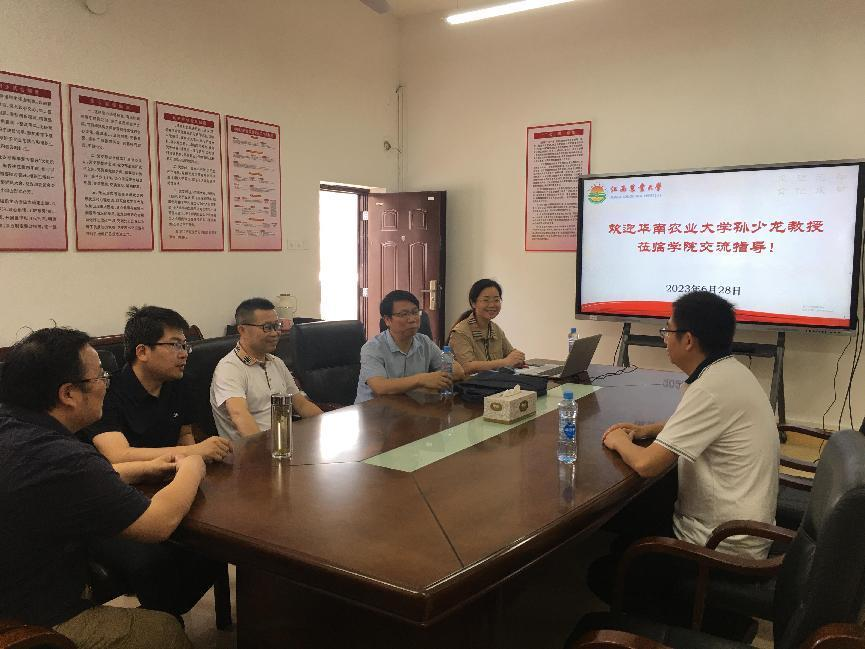 6月28日上午,华南农业大学孙少龙教授来爱游戏ayx官网交流,院党委书记刘庆言、院长王宗德、副院长卢丽敏、副院长龚霞、系主任熊万明副教授参加了交流,交流在致理楼215进行。