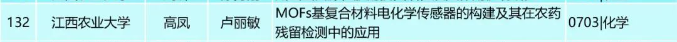 近日,江西省人民政府学位委员会办公室发布了《关于2023年江西省优秀博士硕士学位论文评审结果的公示》,爱游戏ayx官网2020级化学专业硕士研究生高凤(导师:卢丽敏)的学位论文《MOFs基复合材料电化学传感器的构建及其在农药残留检测中的应用》获评2023年江西省优秀硕士学位论文。