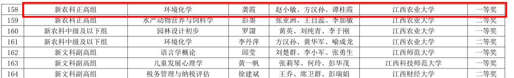近日,江西省第五届高校教师教学创新大赛结果揭晓,爱游戏ayx官网龚霞教授“环境化学”教学团队荣获新农科正高组一等奖。