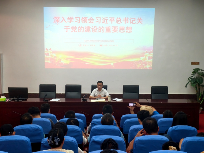 为贯彻落实上级有关要求,进一步提升党员理论水平和党性修养,2025年9月30日14:30,学院党委分党校于致学楼阶梯报告厅举行2025年度党员集中教育培训班开班仪式。学院党委书记刘庆言、学生党总支书记彭玉萌及师生党员共60余人参会,本次开班仪式由彭玉萌主持。